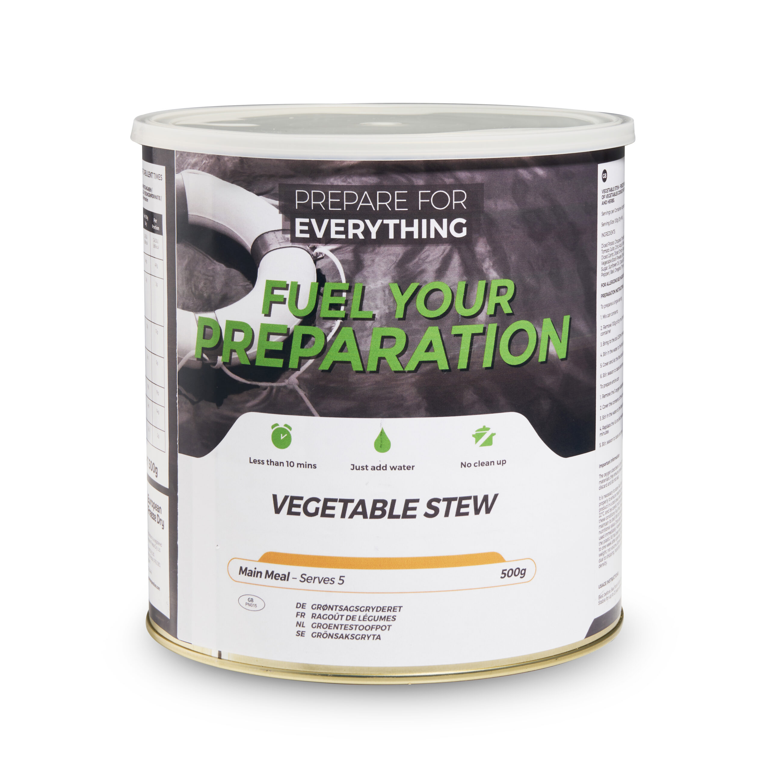 Dit noodvoedsel is ideaal als u een groep mensen moet voeden omdat er per blik maar liefst 5 mensen kunnen worden gevoed. Na opening dient de inhoud binnen een week te worden geconsumeerd, één persoon kan uit dit blik dan ook 5 maaltijden halen.
